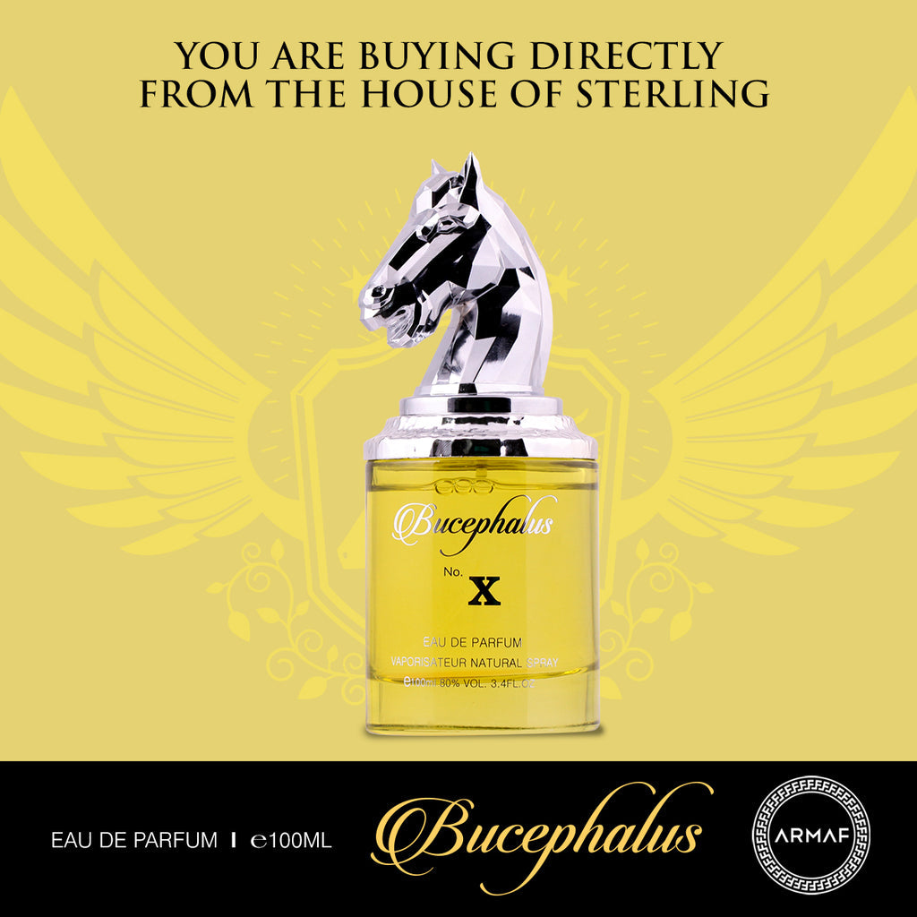 A blend of citrus & spice sweetened by tempting aromas of lavender and cinnamon with a passionately rich base of patchouli and labdanum… Bucephalus X – a tribute to glory!