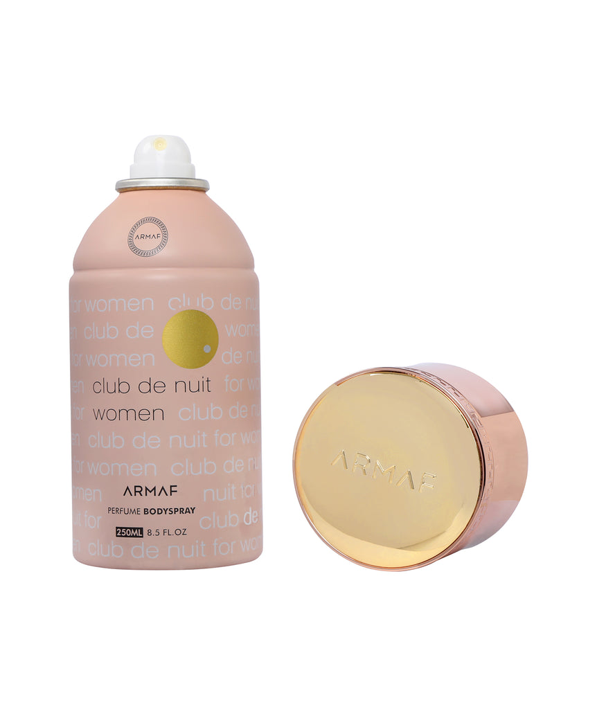 Armaf Club de Nuit Fragrance Body Spray is a floral fruity fragrance for women. A special opulent and delicate scent with sparkling freshness of citrus accords of Grapefruit, Peach and Orange combining with floral fruity notes of Rose, Jasmine and Litchi. The base composes of Vetiver, Patchouli and Musk fused with Vanilla.