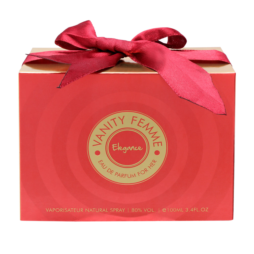 Vanity Femme Elegance by Armaf is a Floral Fruity fragrance for women. Top notes are Black Currant, Aldehydes, Raspberry, and Peach; middle notes are Gardenia, Tuberose, Peony, Ylang-Ylang, and Rose; base notes are Vanilla, Sandalwood, Amber, Cashmere Wood, Cedar, and Musk.