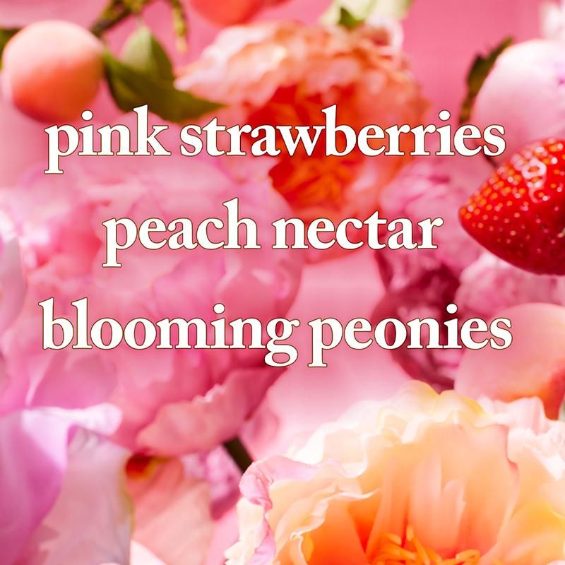 Fragrance Description: Pink strawberries, peach nectar and peony blooms.