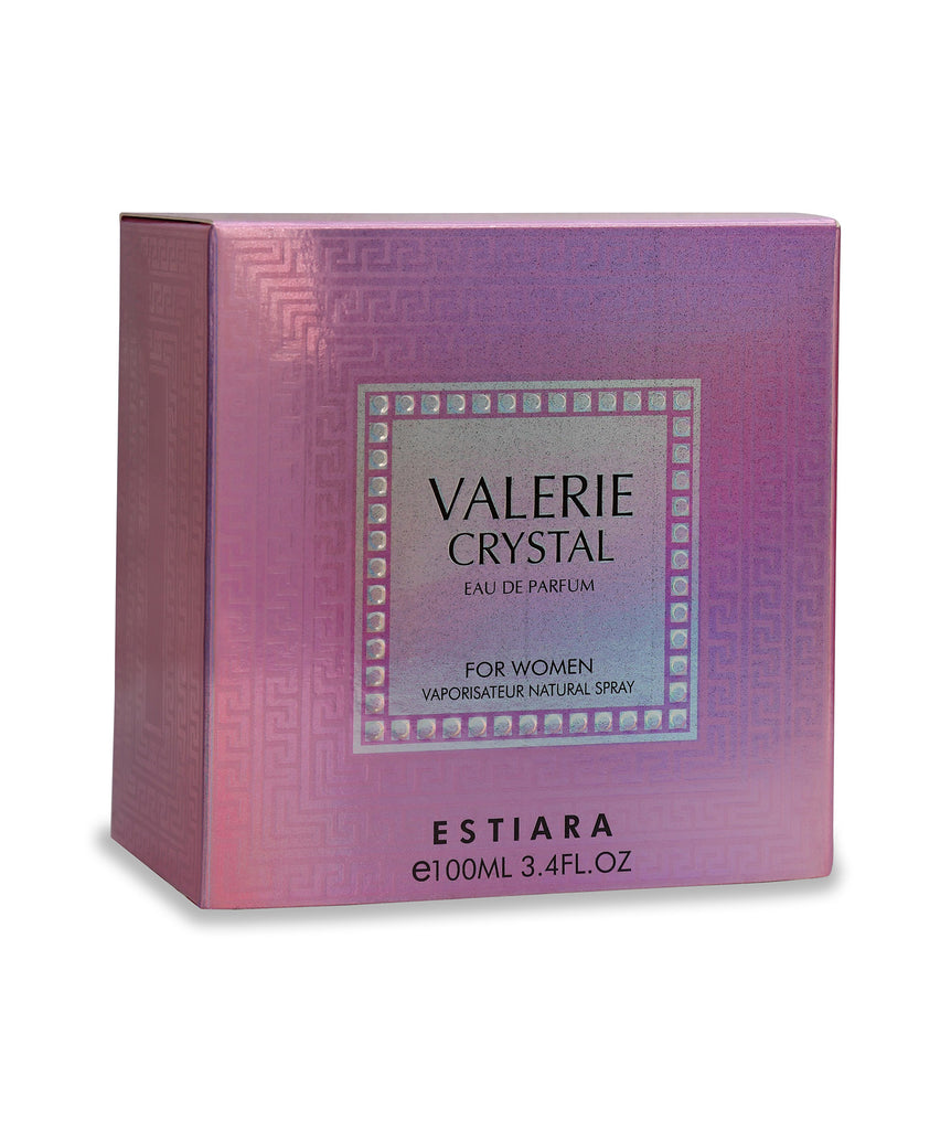 Valerie Crystal by Estiara is a Floral Fruity fragrance for women.Mesmerize the beauties with the black crystal. A sweet and sensual fragrance with an excellent blend of peony, orange blossom, amber and sandalwood. Top notes are Bergamot, Green Apple and Pomegranate; middle notes are Magnolia, Peony and Jasmine; base notes are Musk, Sandalwood and Vanilla