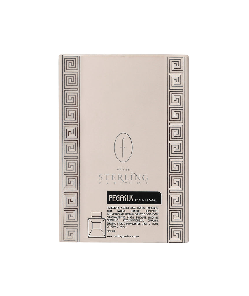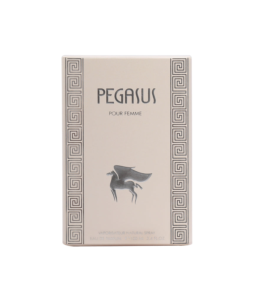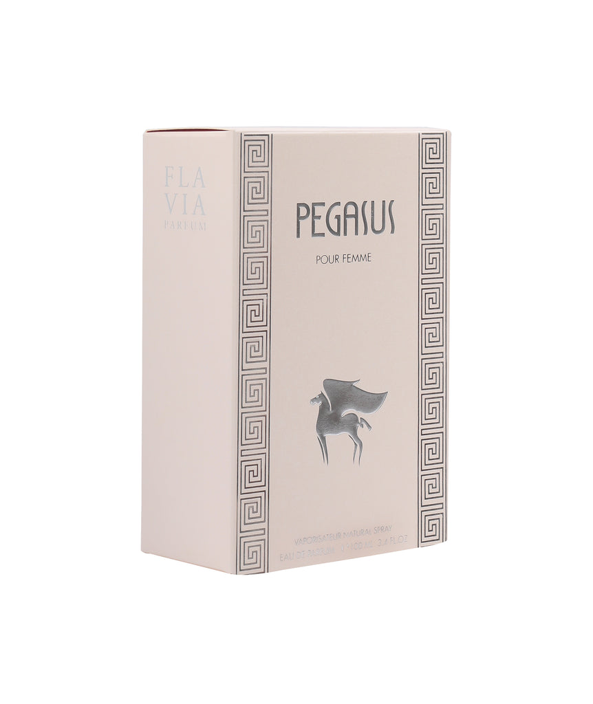 Flavia Pegasus Pour Femme-A magnetic floral fruity fragrance for women starting off with the citrus notes of Orange, Bergamot and Peach, interlaced with a dash of Jasmine, Geranium and Rose and bedded on a musky base of Patchouli and Vetiver.