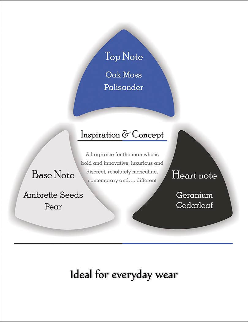 - Top Notes: Oak Moss, Palisander- Heart Notes: Geranium, Cedar Leaf- Base Notes: Ambrette Seeds, PearFragrance Family: Woody fruity