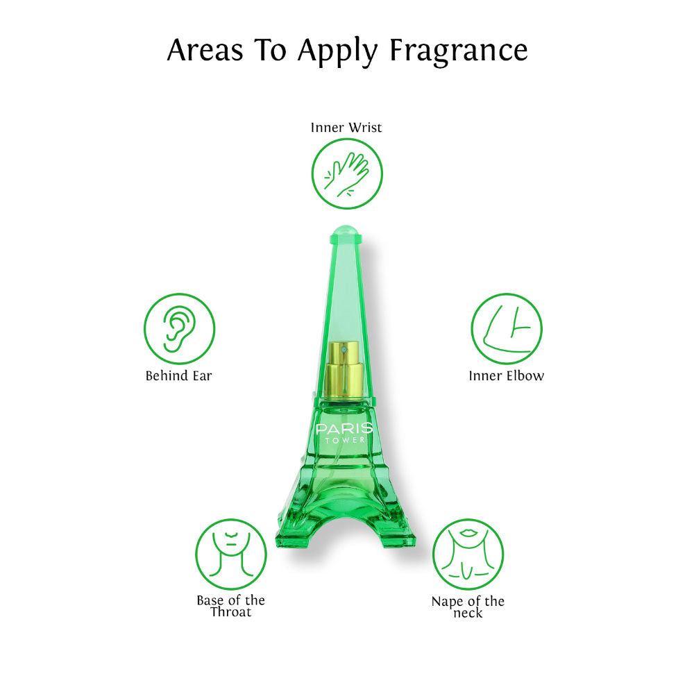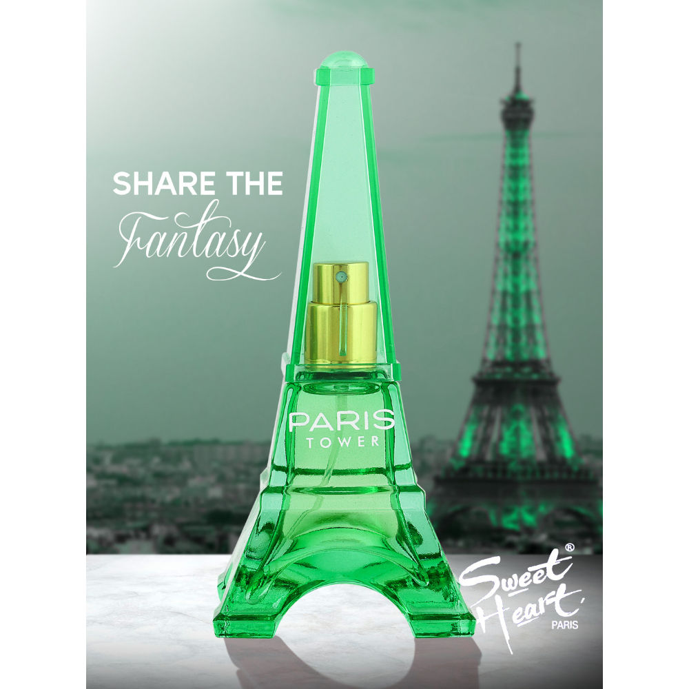 Explore the essence of France, packed in a bottle that is shaped like the magnificent Eiffel Tower. Sweet Heart Green Paris Tower Eau De Parfum diffuses a woody green fragrance that gets you ready to allure anyone in your vicinity. This long-lasting perfume is ideal for women to use on a daily basis.