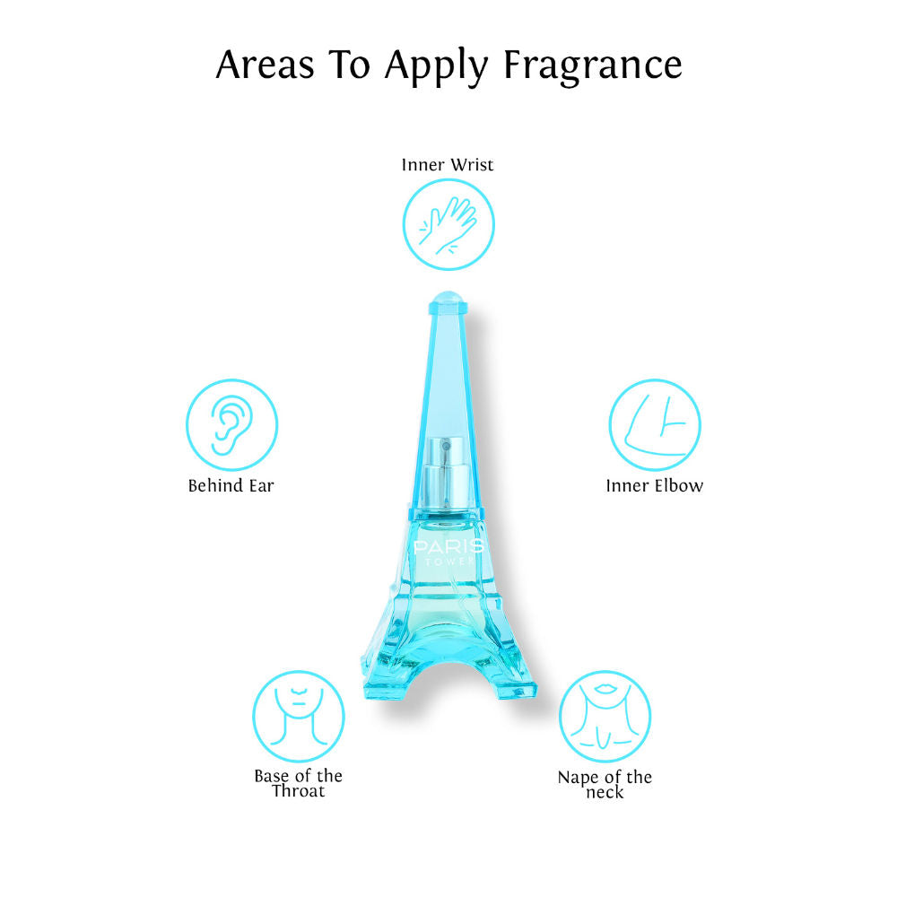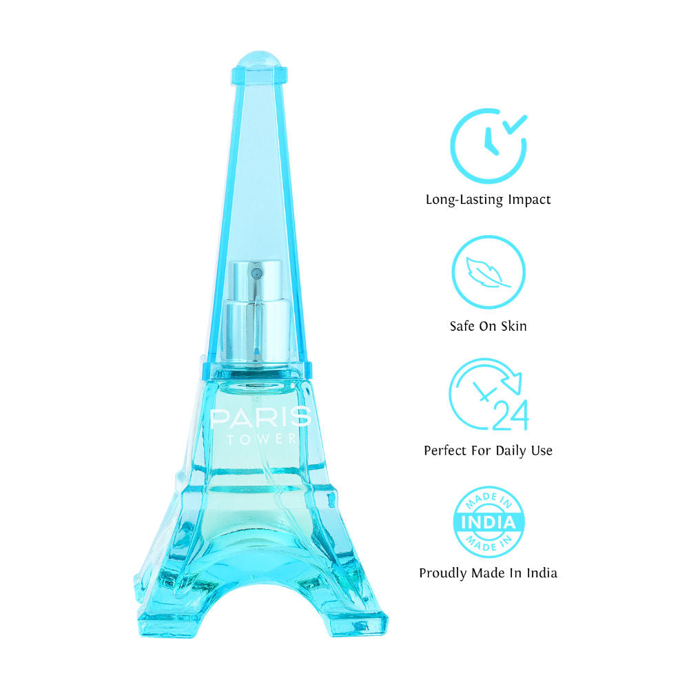 Explore the essence of France, packed in a bottle that is shaped like the magnificent Eiffel Tower. Sweet Heart Light Blue Paris Tower Eau De Parfum has a fresh fragrance, as it's comprised of the Mediterranean and aquatic notes. This perfume will uplift your mood and boost confidence.