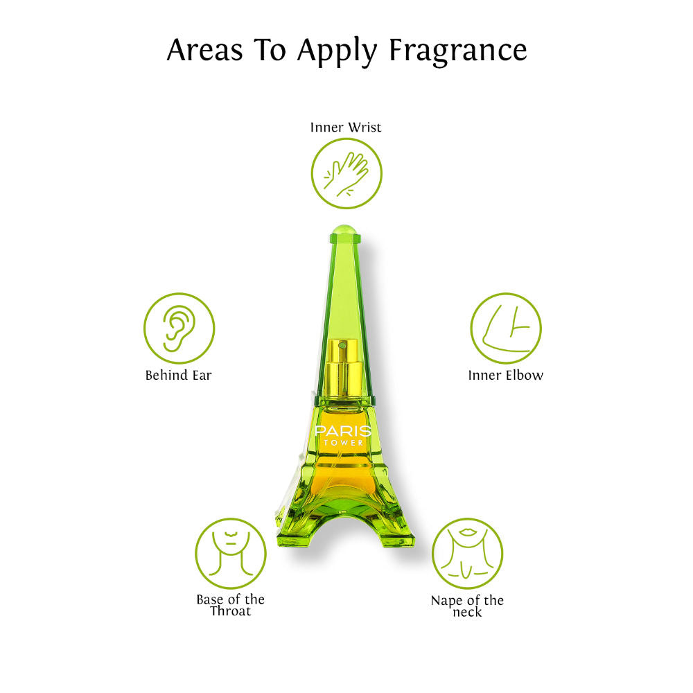 Explore the essence of France, packed in a bottle that is shaped like the magnificent Eiffel Tower. Sweet Heart Light Green Paris Tower Eau De Parfum diffuses fresh galbanum-like fragrance that gets you ready to allure anyone in your vicinity. This long-lasting perfume is ideal for women to use on a daily basis.